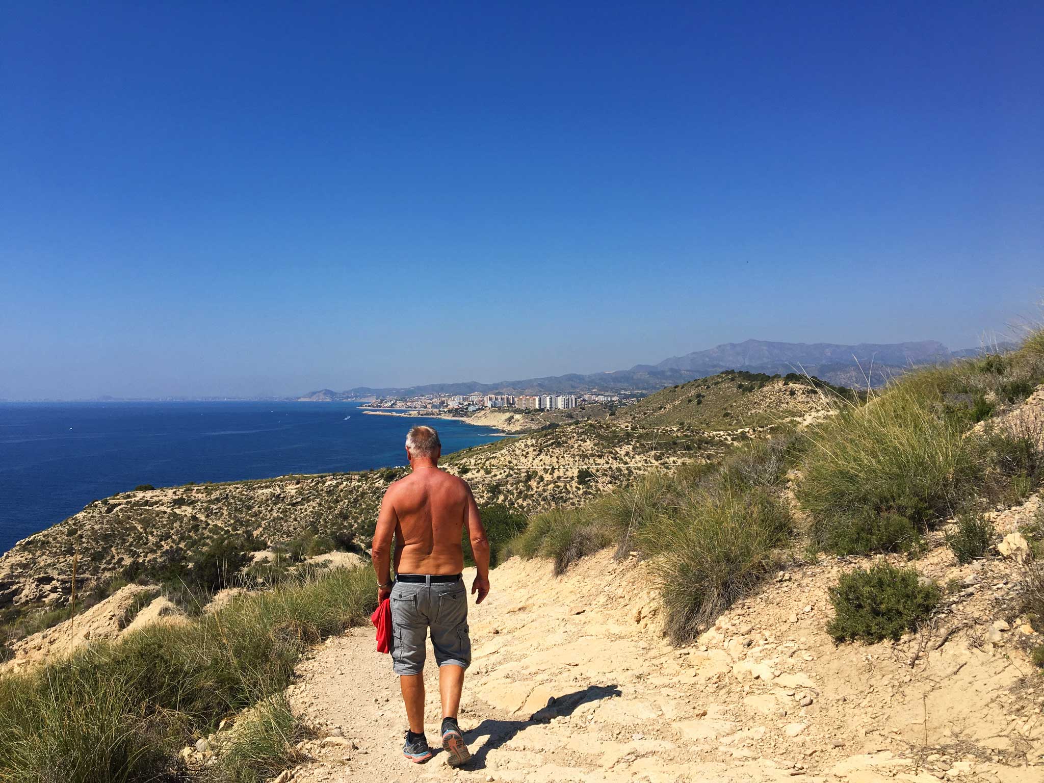 Den første biten er det lagd trappetrinn så det skal være lettere å gå. Når du kommer litt opp får du en flott utsikt mot Benidorm. Etter litt møter du på et skilt med påskriften «Sender de la Costa» Rett etter står det et nytt med «Colada de la Costa»